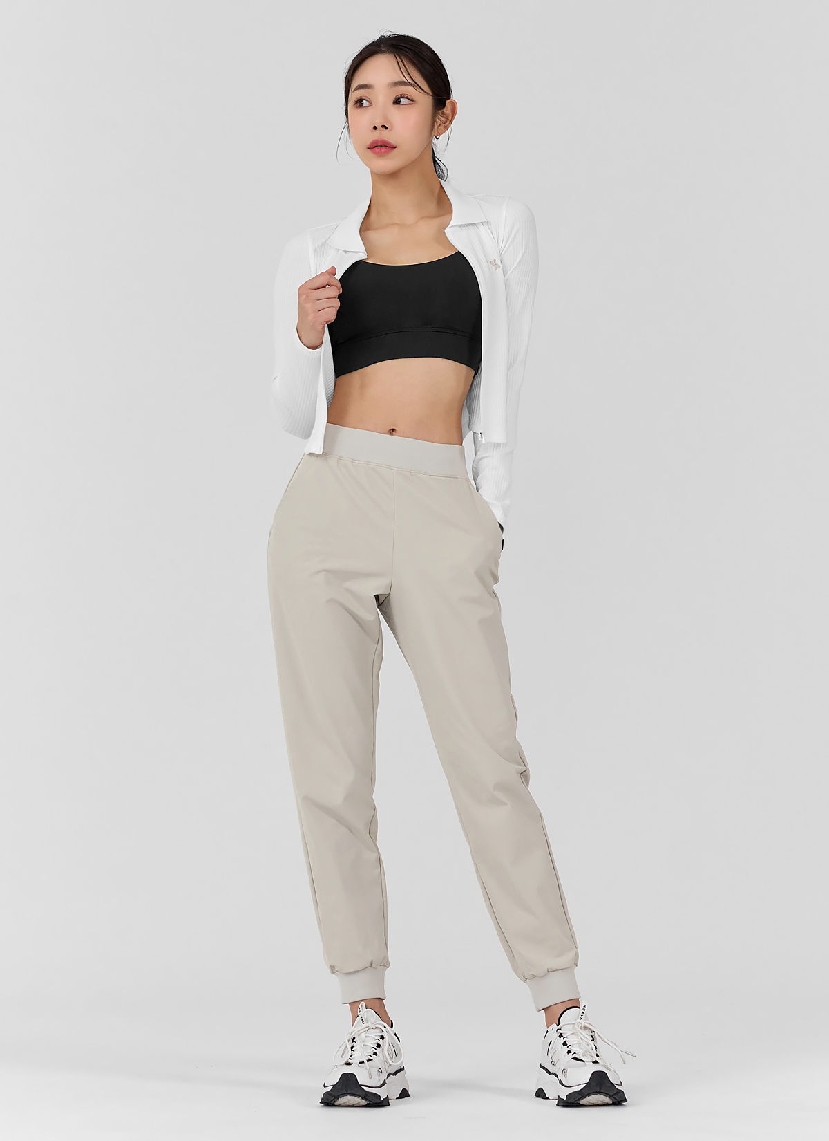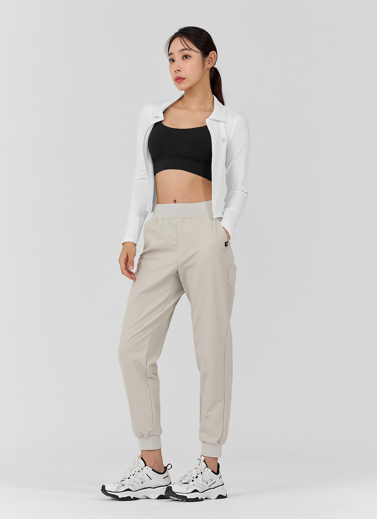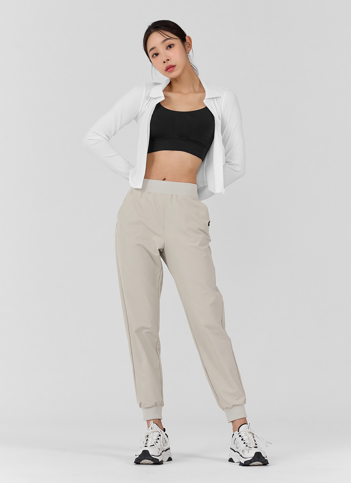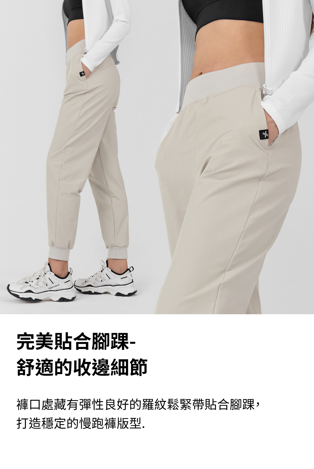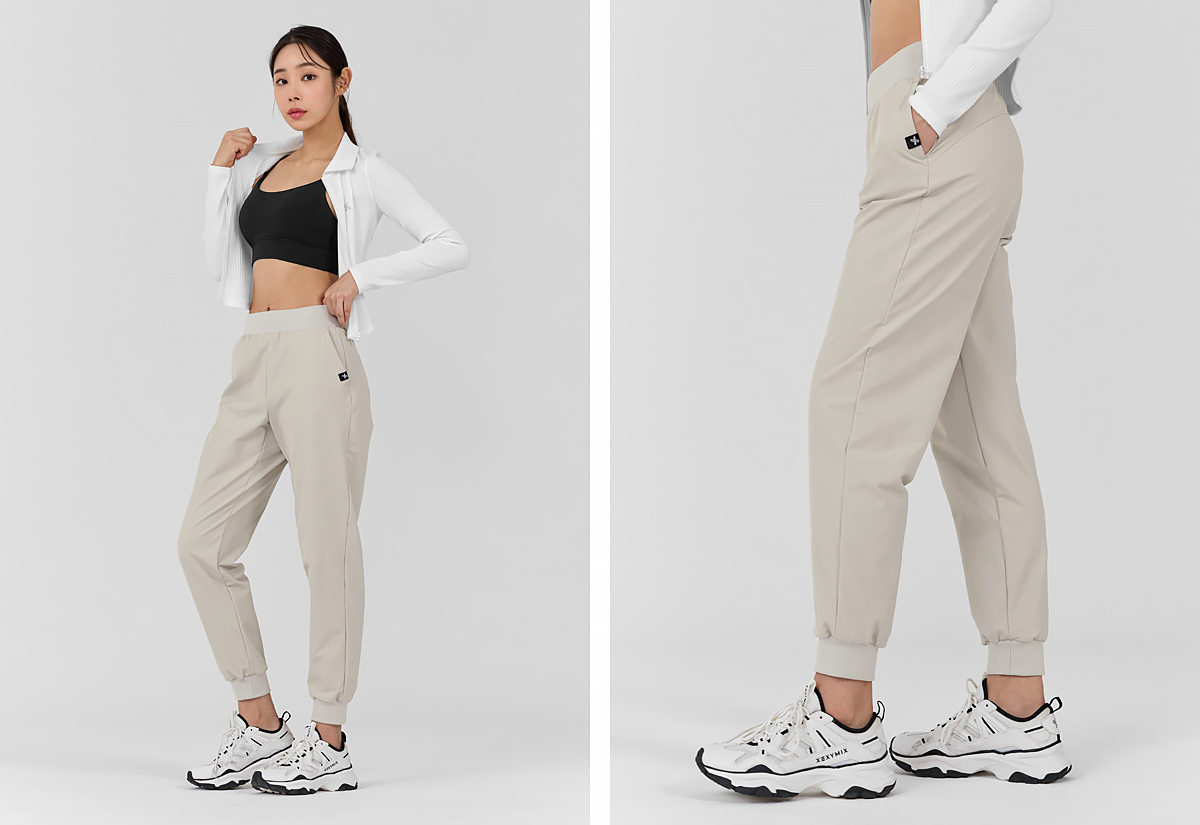 柔軟彈力拉絨運動束口褲|牡蠣米 Oyster Beige 오이스터베이지|XWFTP09H4