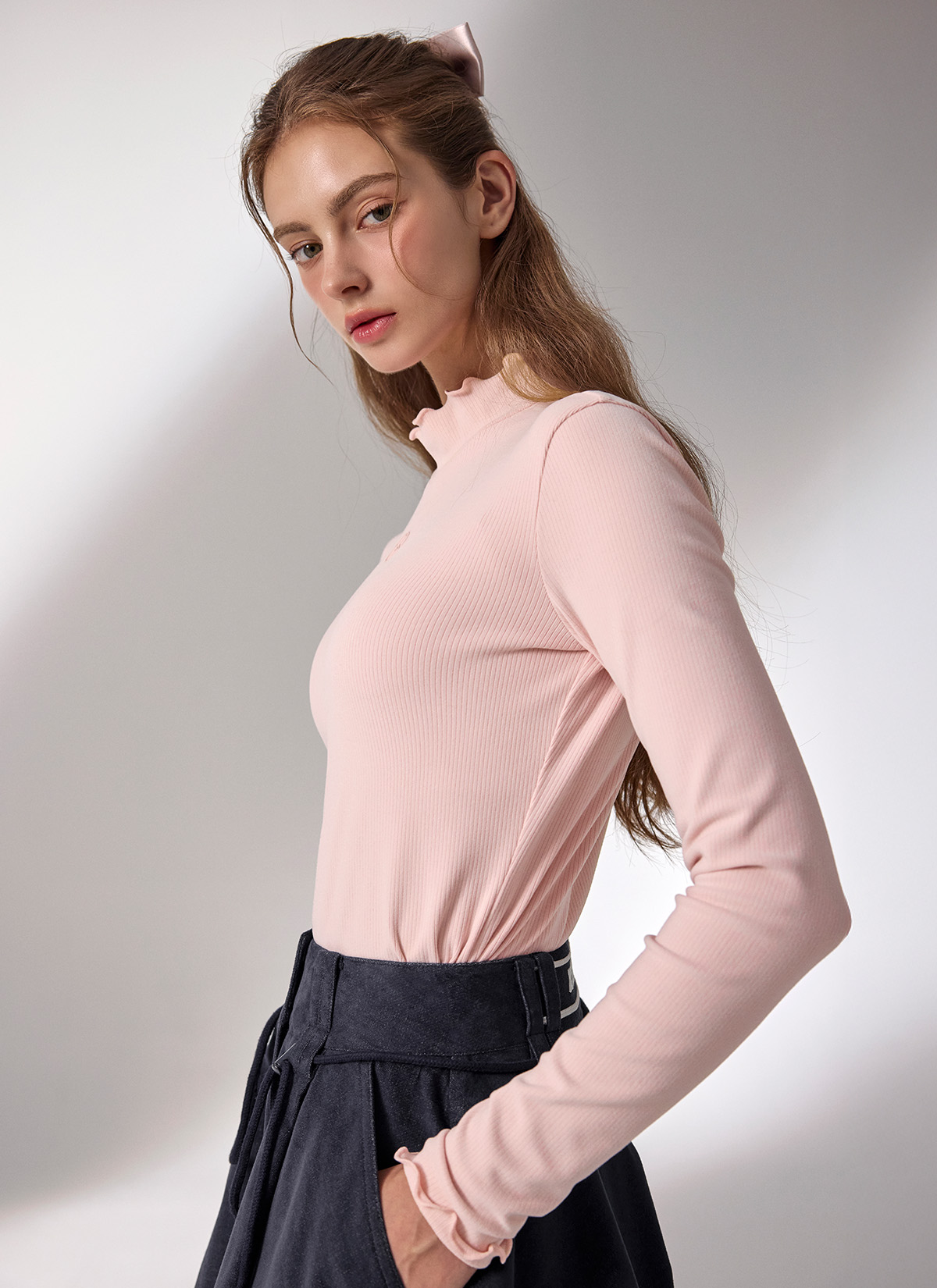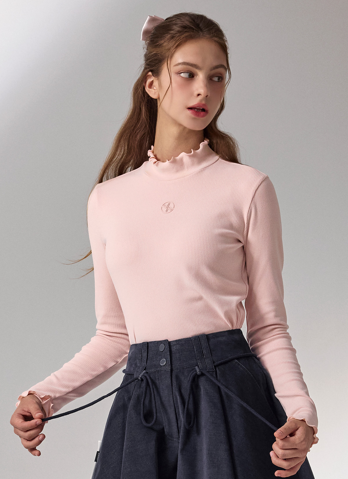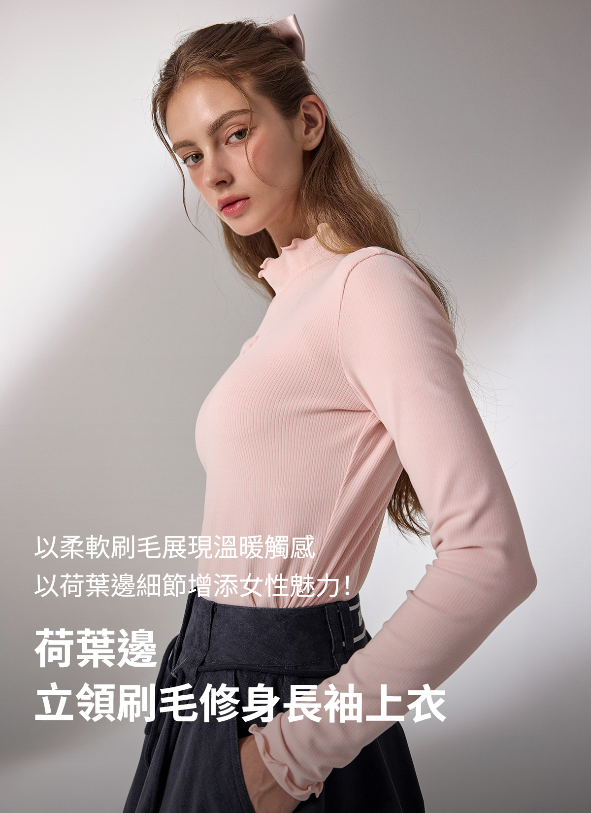 荷葉邊立領刷毛修身長袖上衣|共3色|XFK3TU1202
