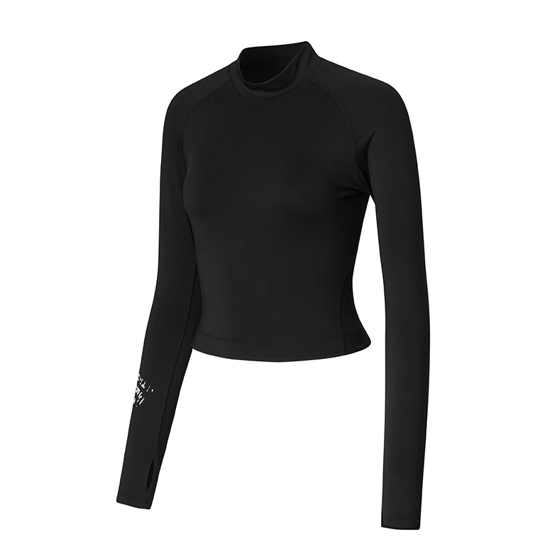 立領短版X裂紋長袖上衣|黑色 Black 블랙|WA5461H