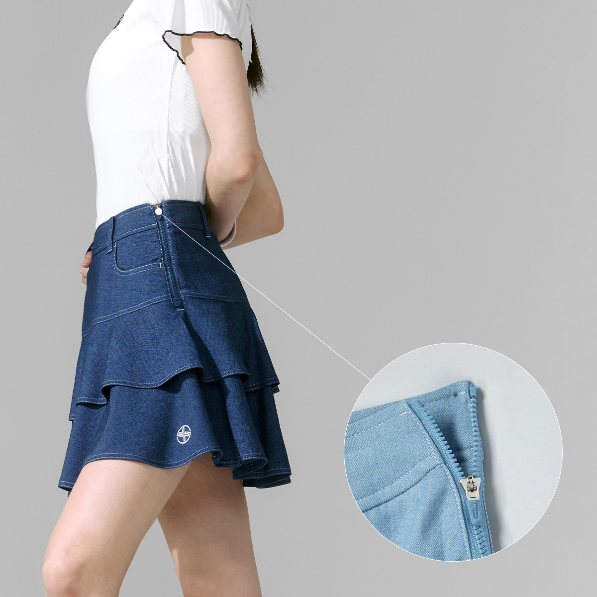 牛仔風格荷葉蛋糕裙 ( 2 in 1 )|共2色|XFK2RK1202