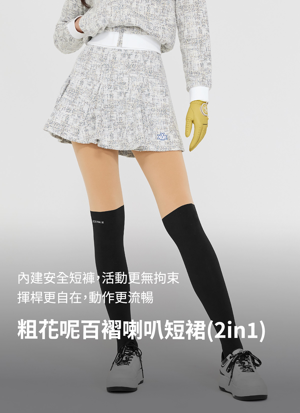 粗花呢百褶喇叭短裙(2in1)|共3色|XGFSK20H4