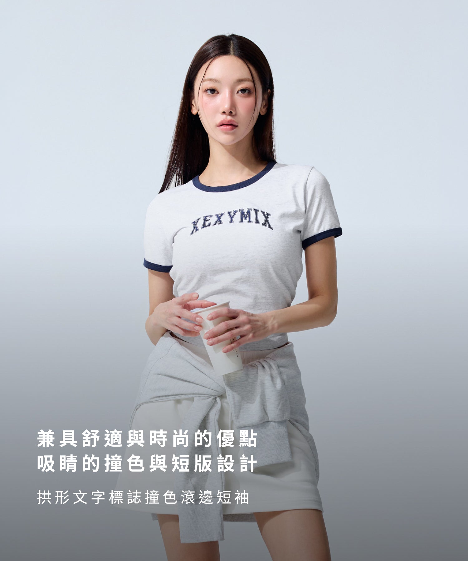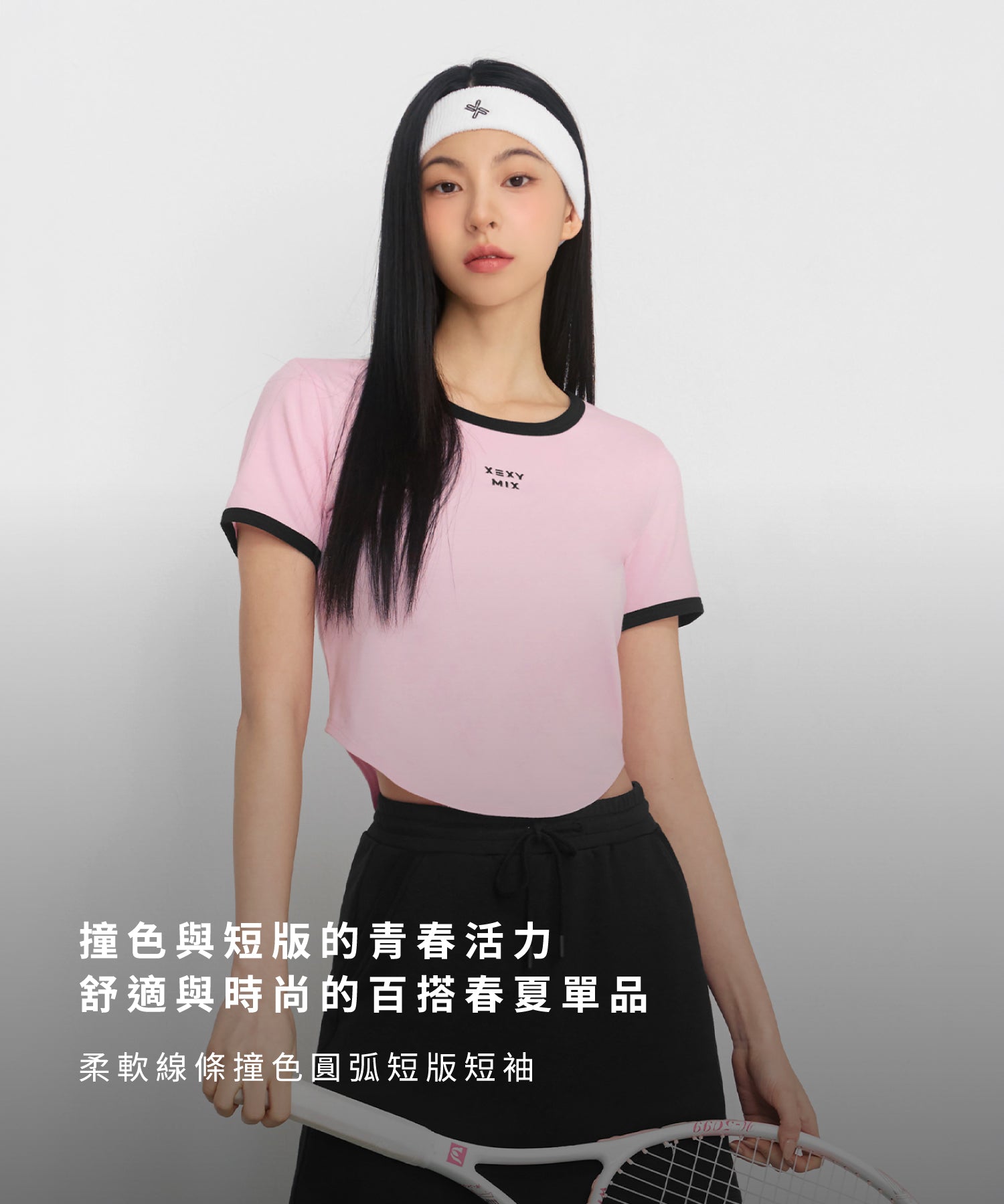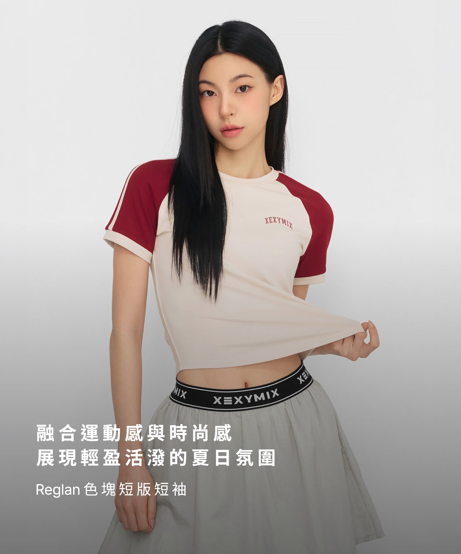 柔軟線條撞色圓弧短版短袖上衣|共3色|XFK2TS1105